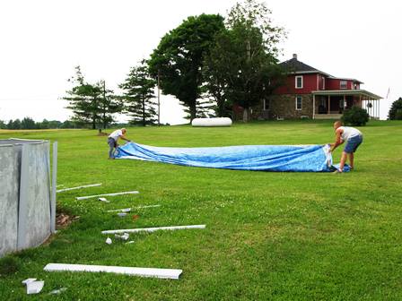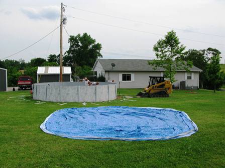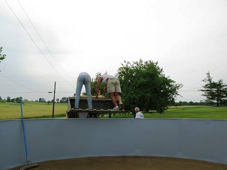 The topseats and caps are now installed. All screws are tightened down and everything is wrapped up. The pool can now be finished filling out of your hose, or you can have water hauled in by tanker truck. Happy swimming!!